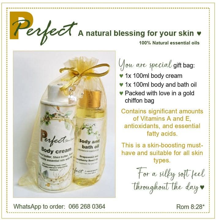 You are special Pamper Bag contains 2 Products: 100ml Body Lotion and 100ml Body/Bath Oil
